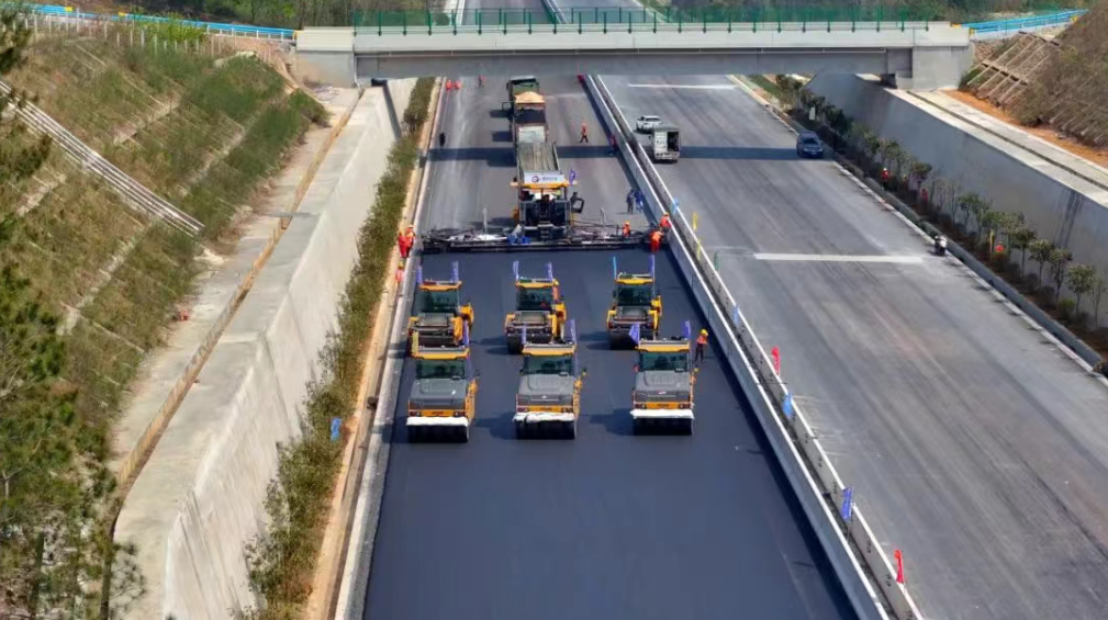 貴平高速通車后將使貴陽至平塘通行時間從3 小時縮至 1.5 小時,而這份 “速度承諾” 的背后,是徐工設備的全天候作戰能力。智慧施工集群的遠程喚醒、休眠功能實現 24 小時連續施工。這種高效能在復雜路段尤為關鍵。通過設備協同作業,1 臺攤鋪機與 6 臺無人駕駛壓路機協同壓實,大幅提升施工效率,為全線年底通車奠定堅實基礎。